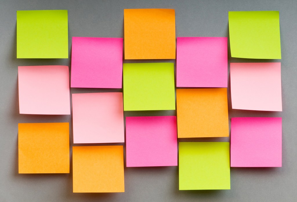 Mapping ideas on sticky notes is an easy way to see the big picture—concepts, knowledge, terms, processes, anything that contributes to the sum of its parts.
