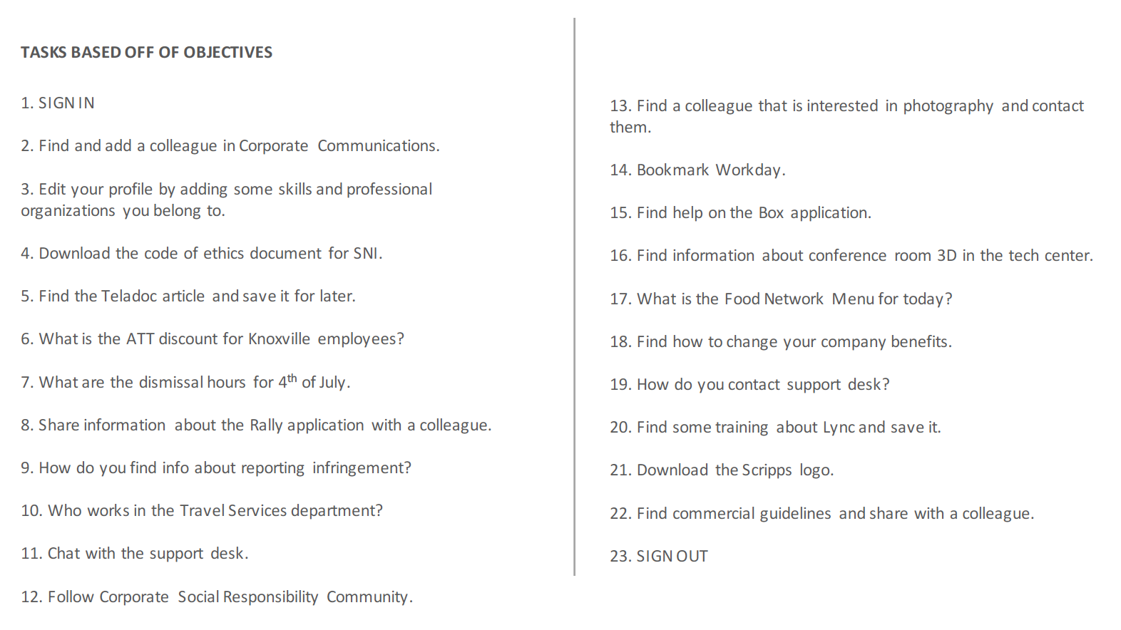 Written on the paper was twenty-three tasks, taken from email surveys conducted in prior weeks before. The participants took forty-five minutes to complete the tasks.